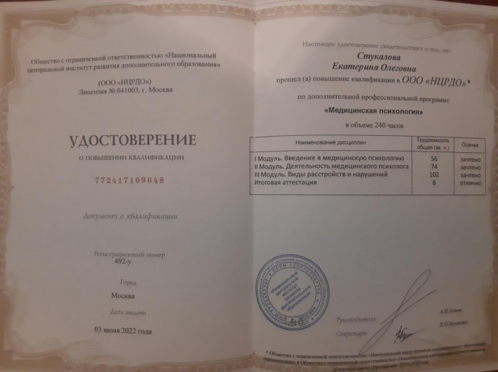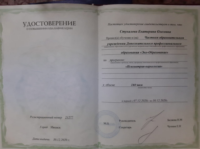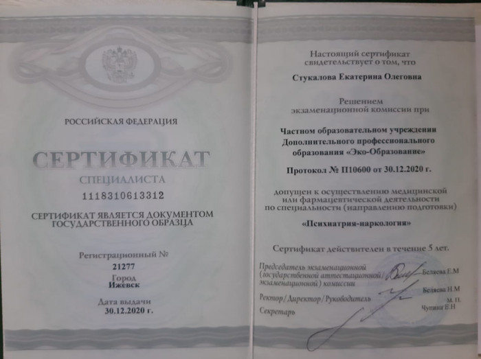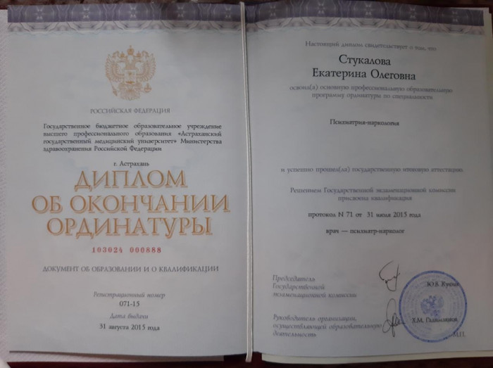 Екатерина Стукалова - психиатр-нарколог медицинской клиники «Гармония» {city_p}